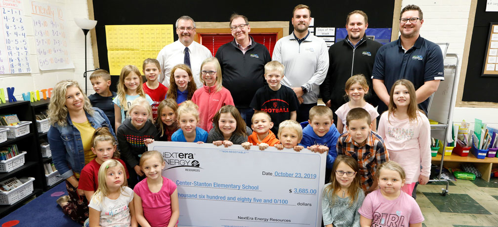 “We’d like to thank NextEra Energy Resources for their kindness and generosity,” said Center-Stanton Elementary Principal, Mark Sondag. “With the ever-changing need of up-to-date technology, the money NextEra Energy Resources has donated will help us purchase additional i-Pads for our elementary students.”